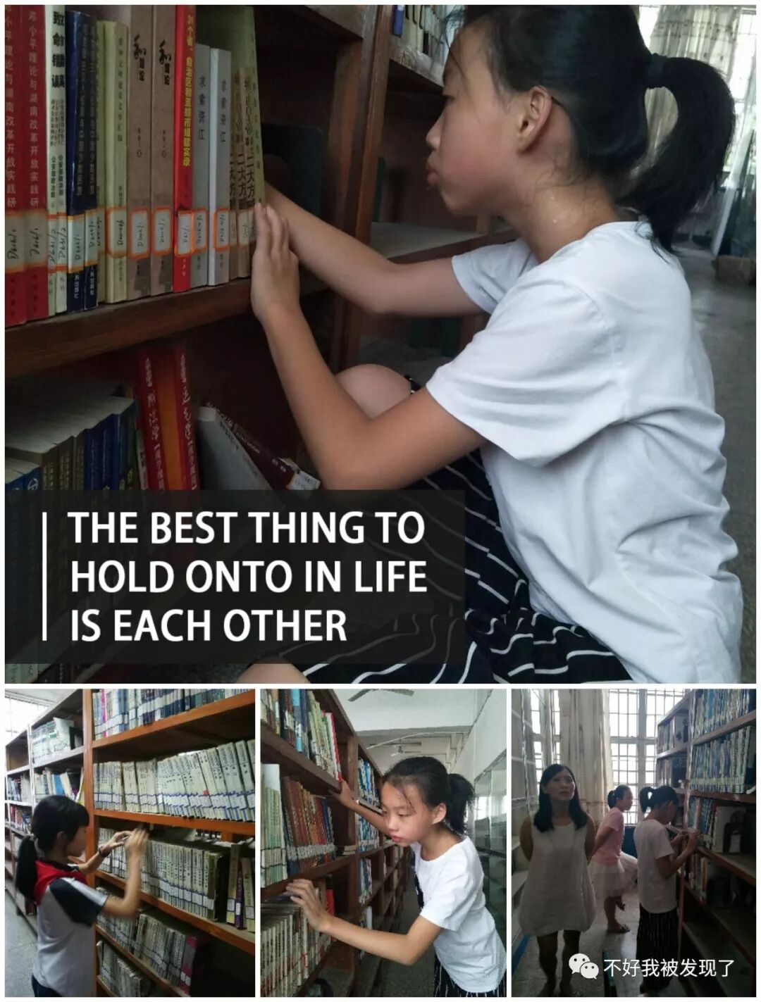 书库里很热,汗水打湿了衣服,她们没有在意;在整理过程中,发现了自己喜欢的书,她们抵住了诱惑;在书架上爬上爬下,书架间走来走去,她们不感觉到累....经过一番努力,一排排的书籍在她们的小手上变得整齐划一了,看着自己的劳动成果,脸上露出了欣慰的笑容,当然,接下来的时间就是赶紧洗手,拿起自己喜欢的书籍啃了起来。